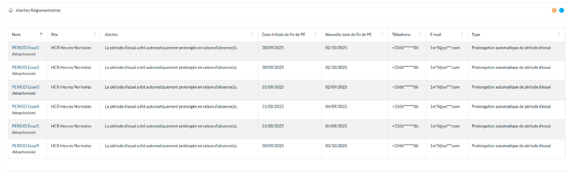 Le seuil des 75 % sera alors à nouveau atteint autour du 28 juin 2025, ce qui peut déclencher une deuxième alerte “Une période d’essai arrive à expiration” pour le même contrat.