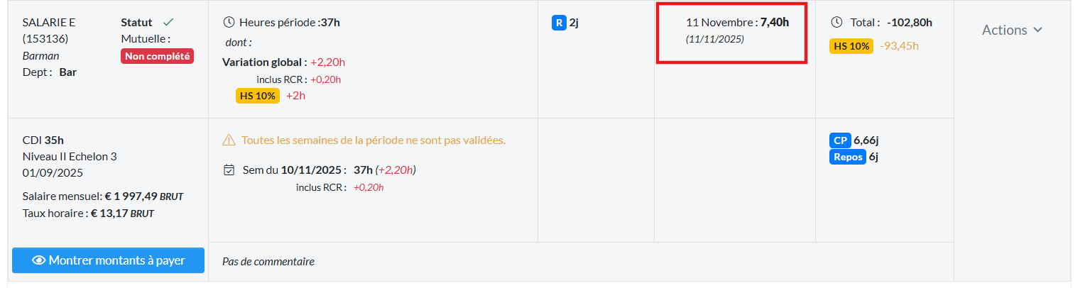 Lorsque des jours fériés sont travaillés et que l’API EVPs est activé, alors le nombre d’heure travaillés est communiqué à la paie