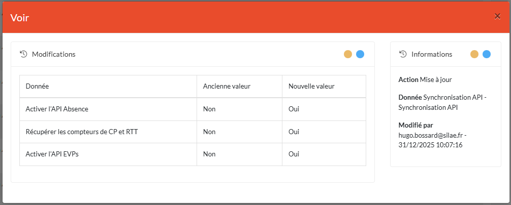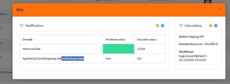Via API lorsqu’une modification ou une suppression d’absence est réalisé, alors le code 633 est envoyé sur l’absence pour que la paie l’interprète comme absence rectificative