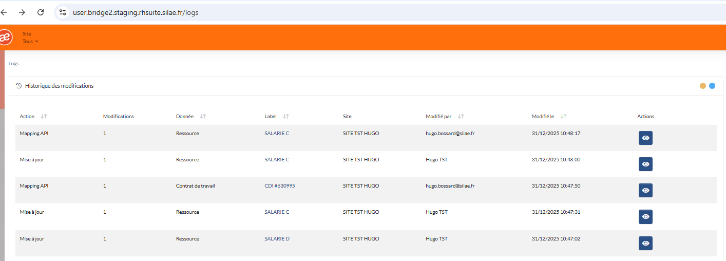 Cette fonctionnalité à pour objectif de tracer les activations / désactivations d’API ainsi que les mapping réalisés sur les données ressources et contrats